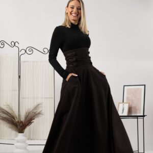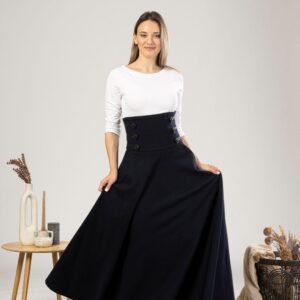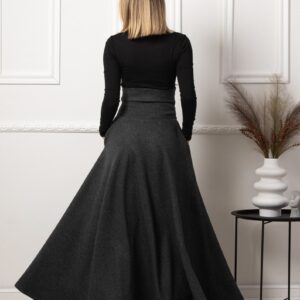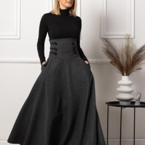 Elegantes Black Winter Wool Maxi Skirt