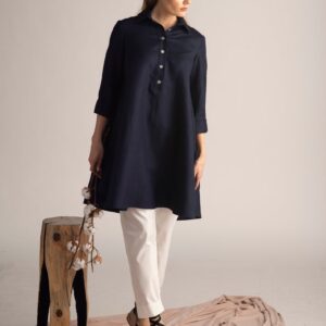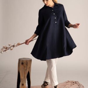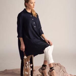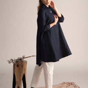 Elegantes Dusty Blue Oversized Linen Tunic