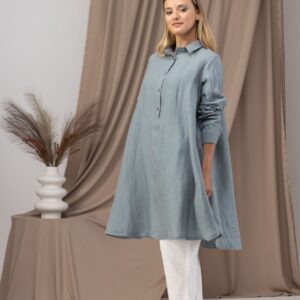 Elegantes Dusty Blue Oversized Linen Tunic