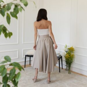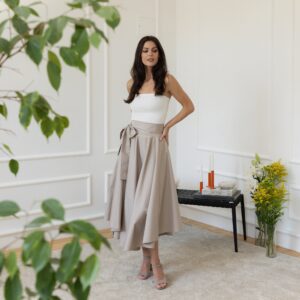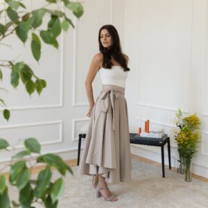 Elegantes Midi Cotton Flutter Elegant Skirt with High Waist and Front Bow
