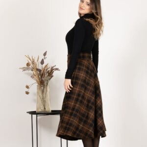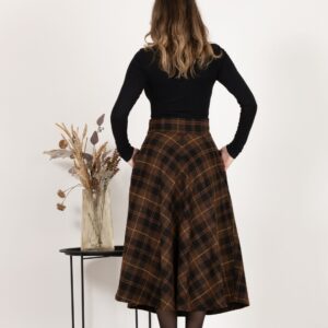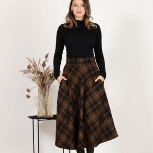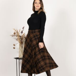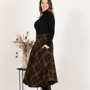 Elegantes Midi Wool Plaid Skirt with High Waist and Pockets