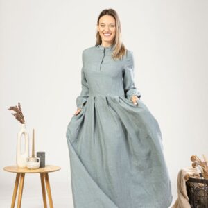 Elegantes Mustard Linen Prairie Maxikleid