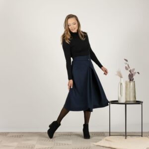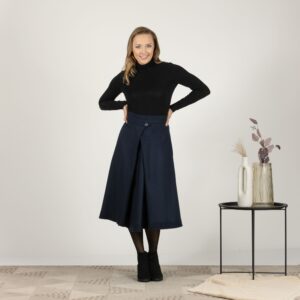 Elegantes Wool Front Button Statement Skirt